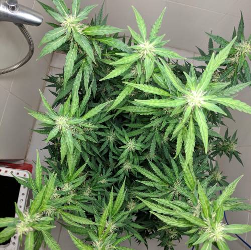Начиная с девятой недели гровер заменил свет, установив LED лампу жёлтого спектра мощностью 370 Вт. Растиха еще немного прибавила в размере, вытянувшись на 10 сантиметров. Шишки продолжали набирать массу, но, что примечательно, практически не пахли. К десятой неделе рост куста вверх прекратился. Гровер изменил схему питания:
