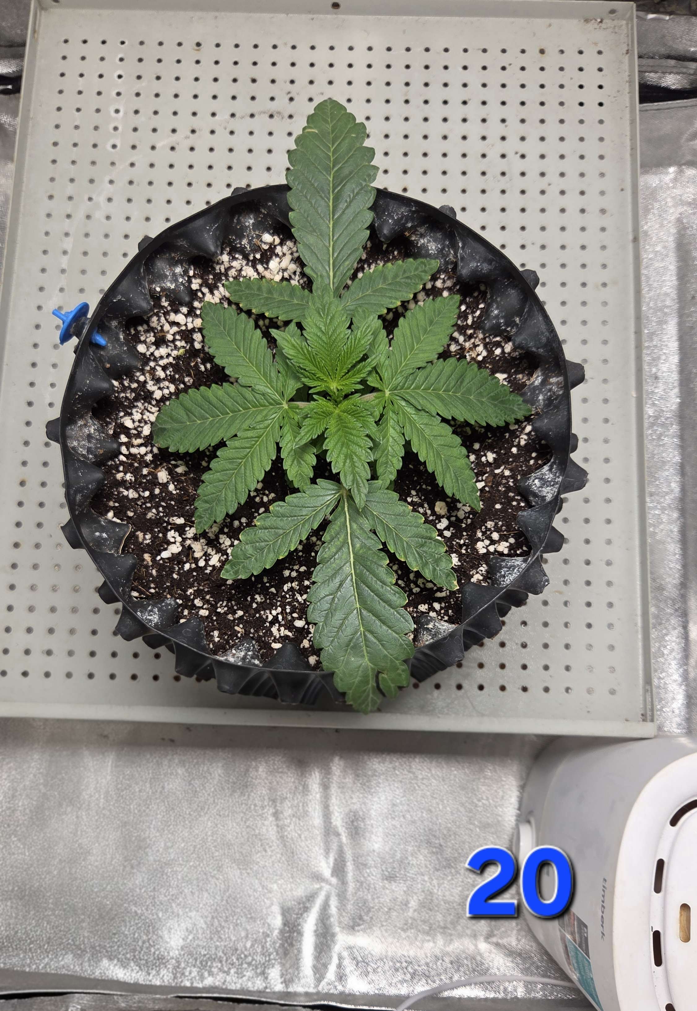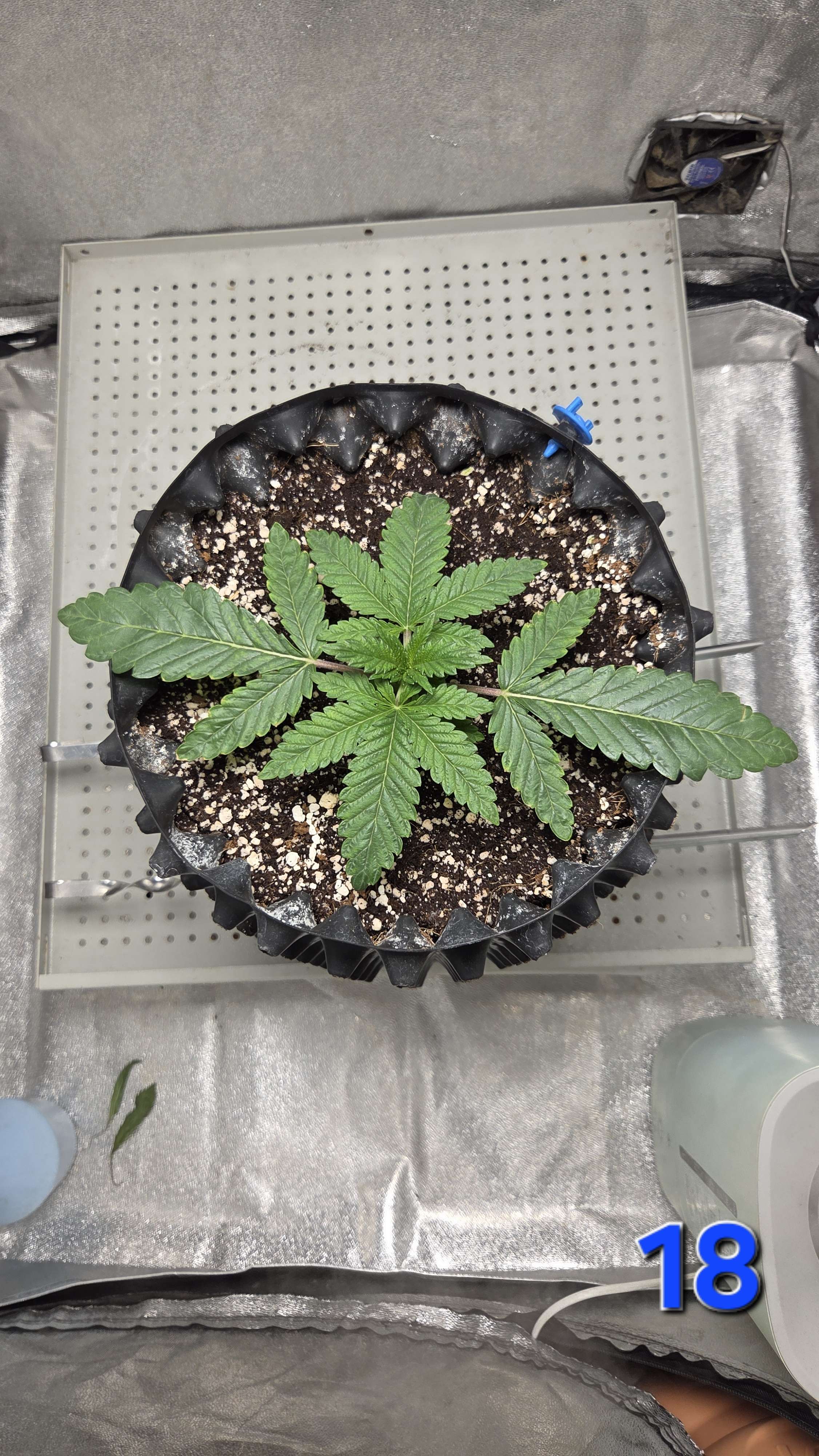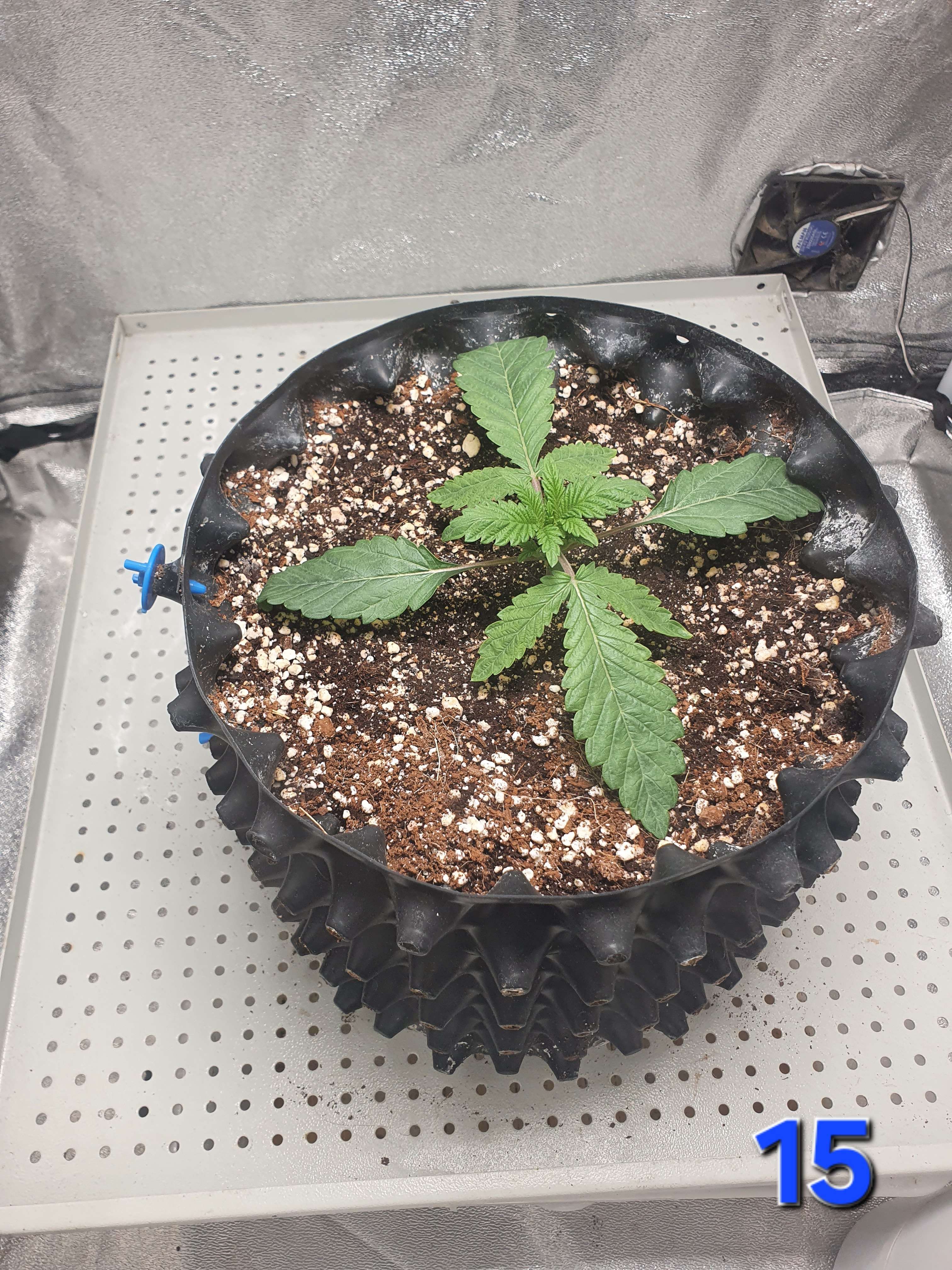 А образовался засол из-за нескольких неблагоприятных факторов описаных на прошлой неделе, в именно - низкая темпа + кривой VPD + свет 24/0 - что в совокупности привело к замедленному росту корневой системы и как следствие не успевала съедать что ей дают.