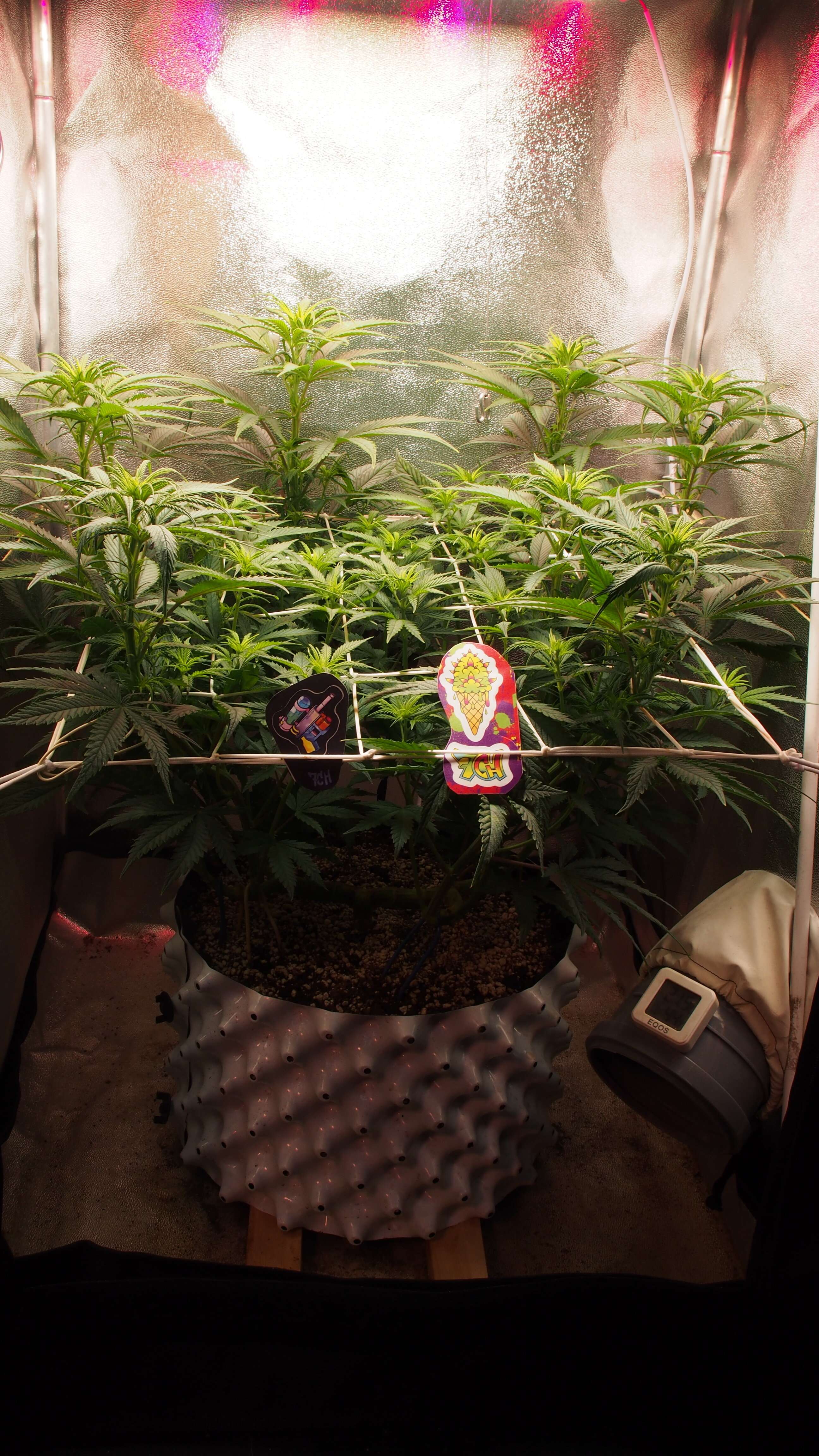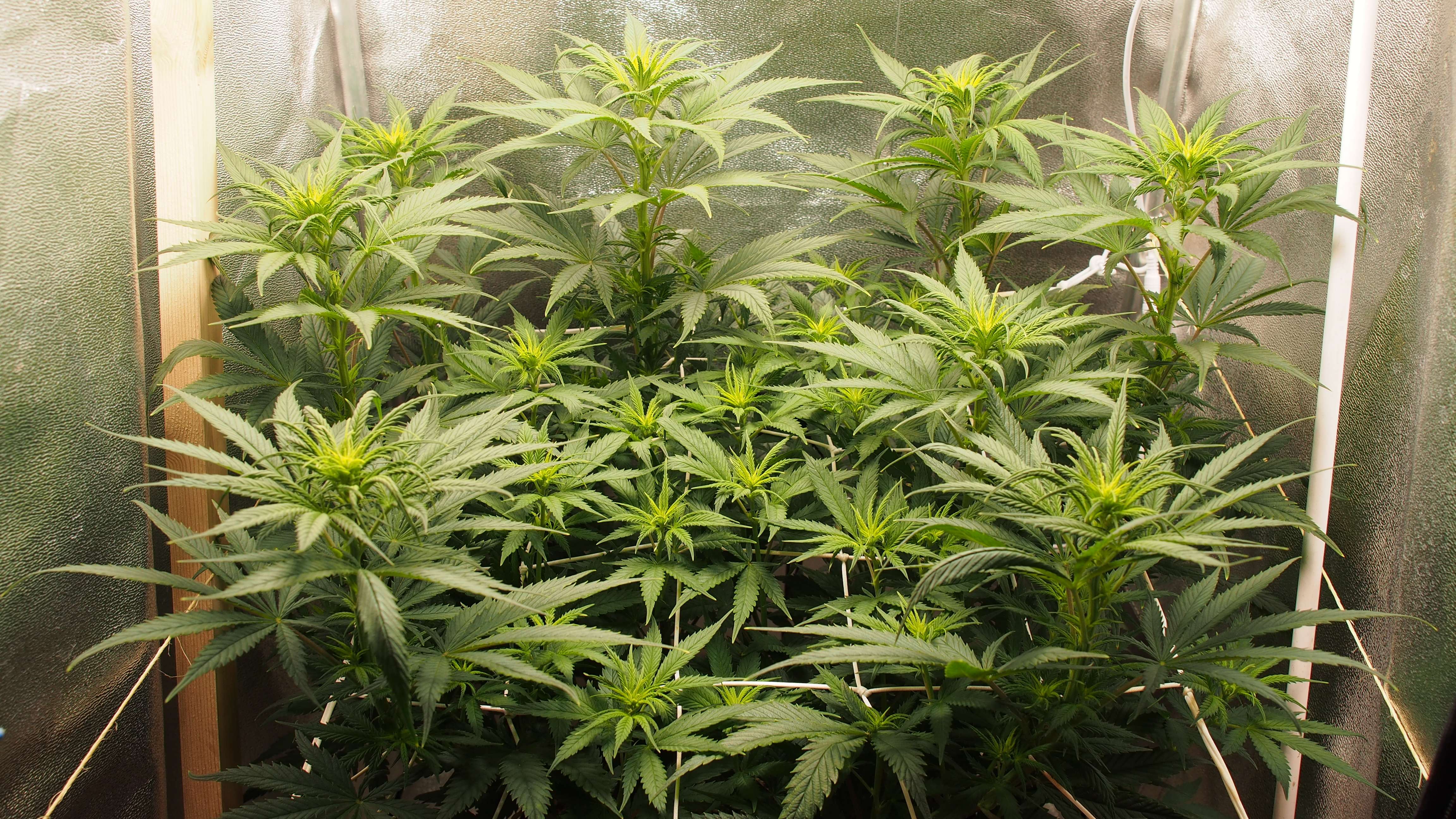 По окончании 9-й недели перевёл растишку на 12/12 и в течении пяти дней пол деваха так и не показала (стигмы). Но прилично выстрелила вверх. Поскольку опыта на фотиках у меня мало (давно было), то решил, что "что-то пошло не так" и добавил ночи 14/10. В течении ещё двух дней стигмы так и не показались. Пришлось прибегнуть к самому верному способу: создать на форуме тему с вопросом "когда же зацветёт?" ..и тут же на следующий день повылезли стигмы. Способ рабочий!