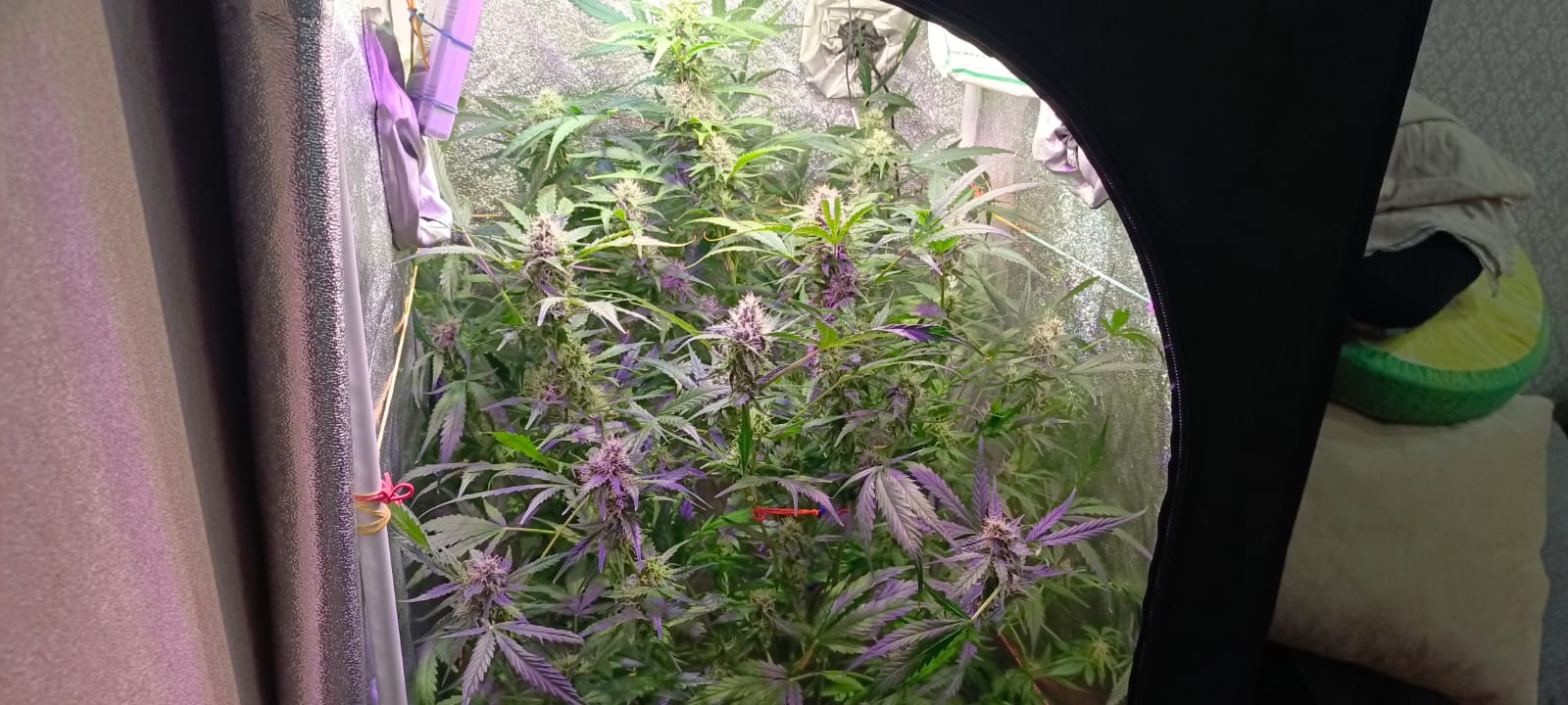 Генератор углекислого газа работает на полную, в следствии чего у растишки появился зверский аппетит. За неделю значительно прибавила в массе соцветий, трихомы стали мутными, но еще не янтарными. Некоторые стигмы покоричневели.