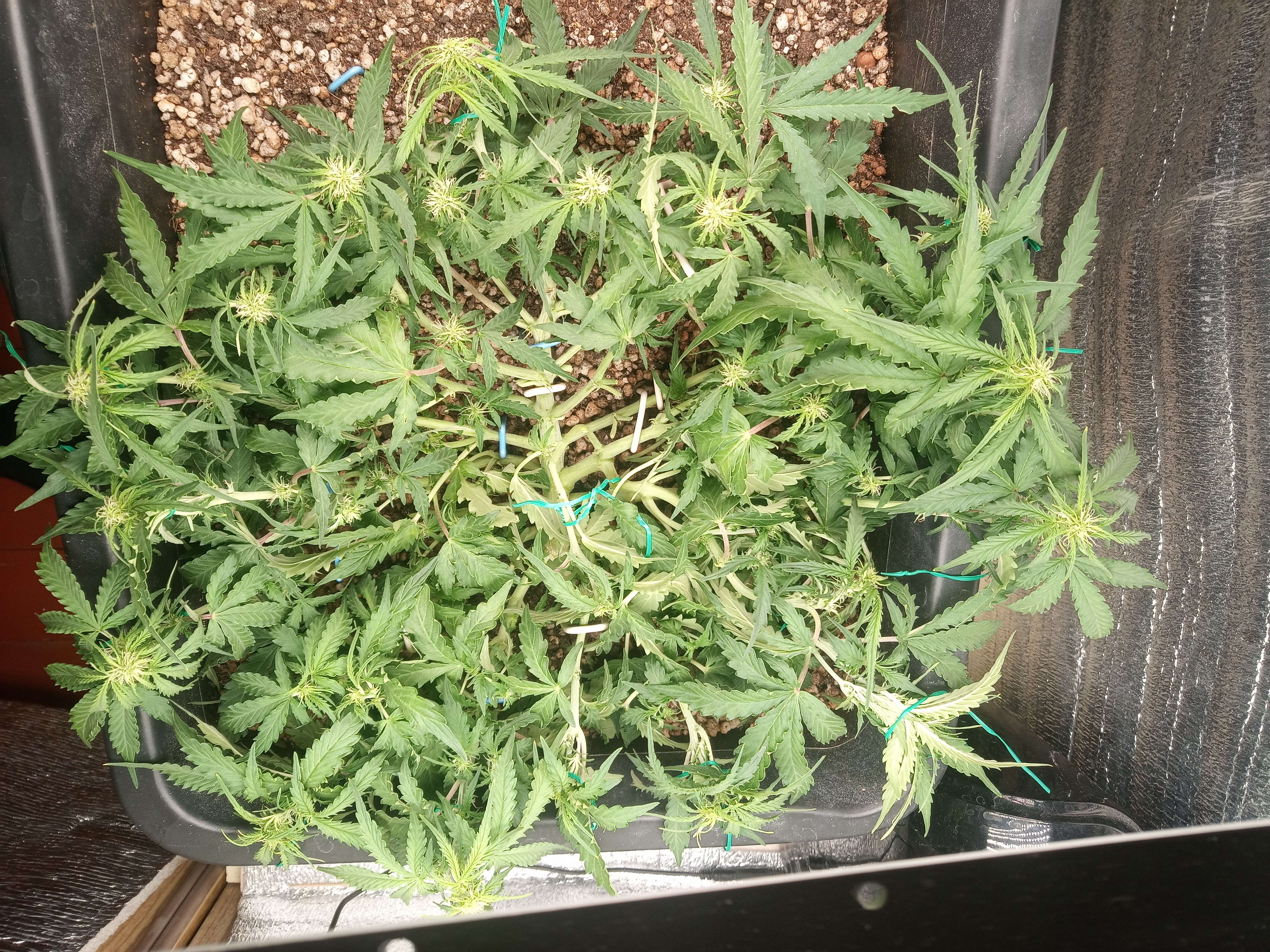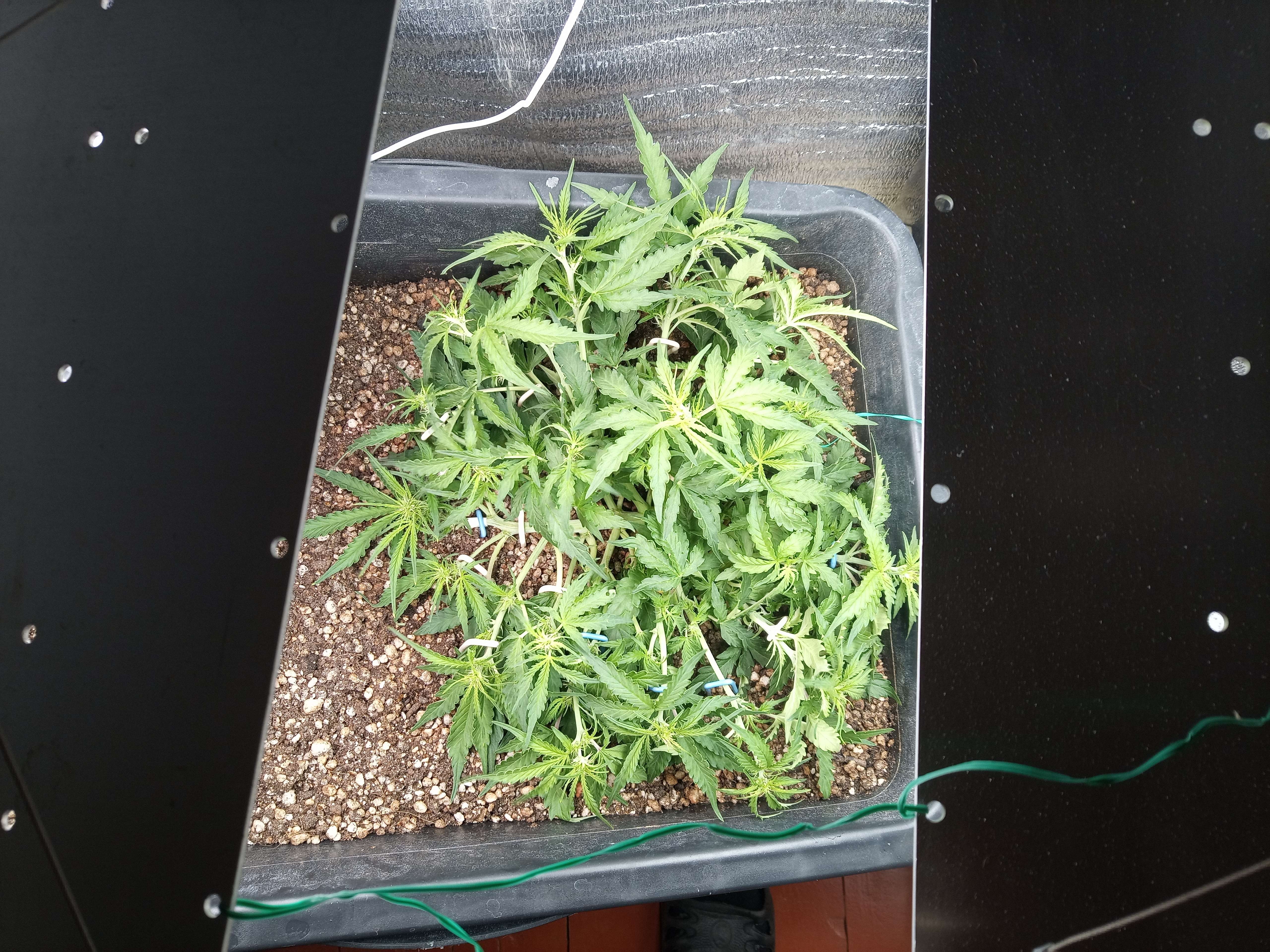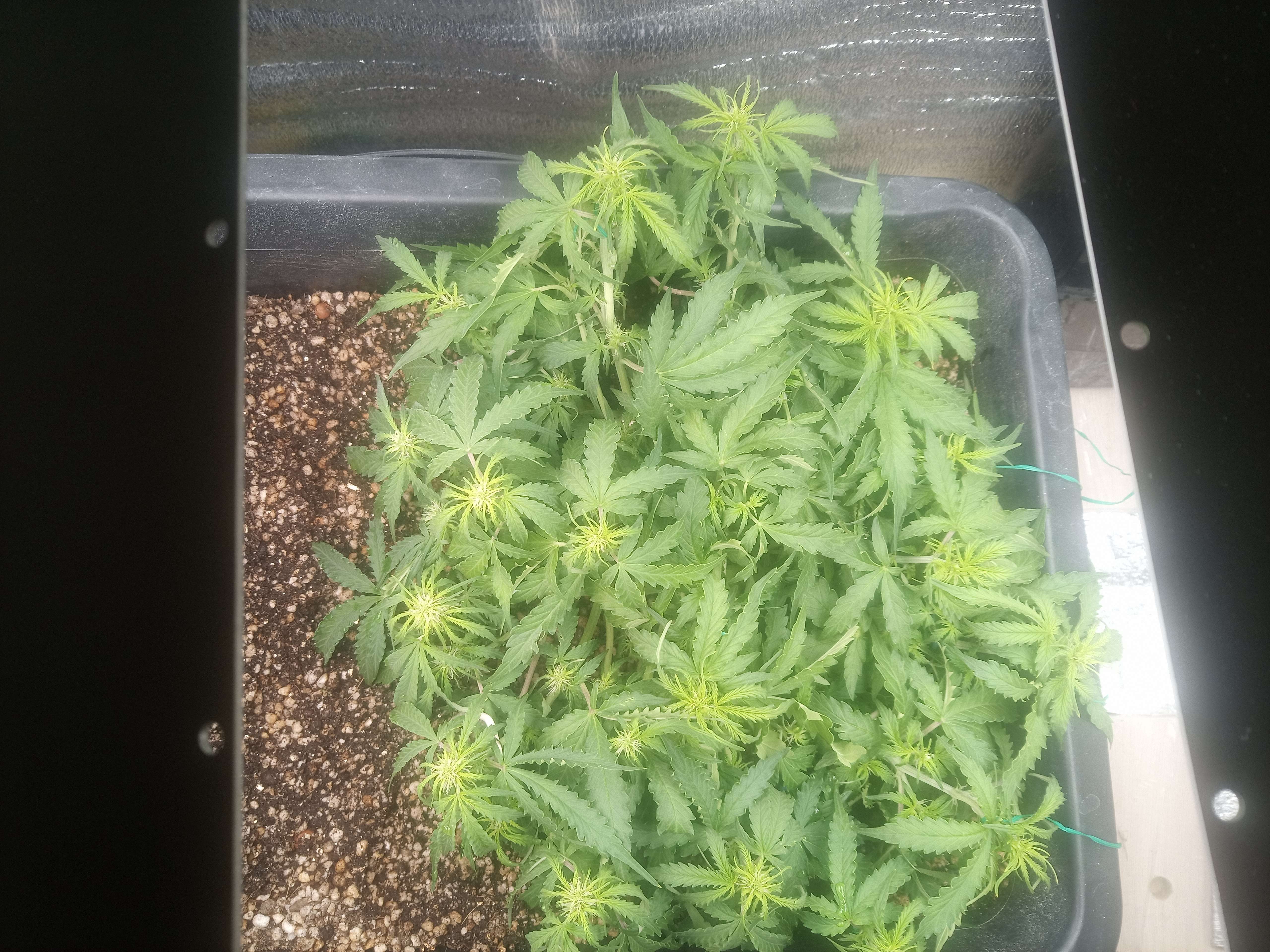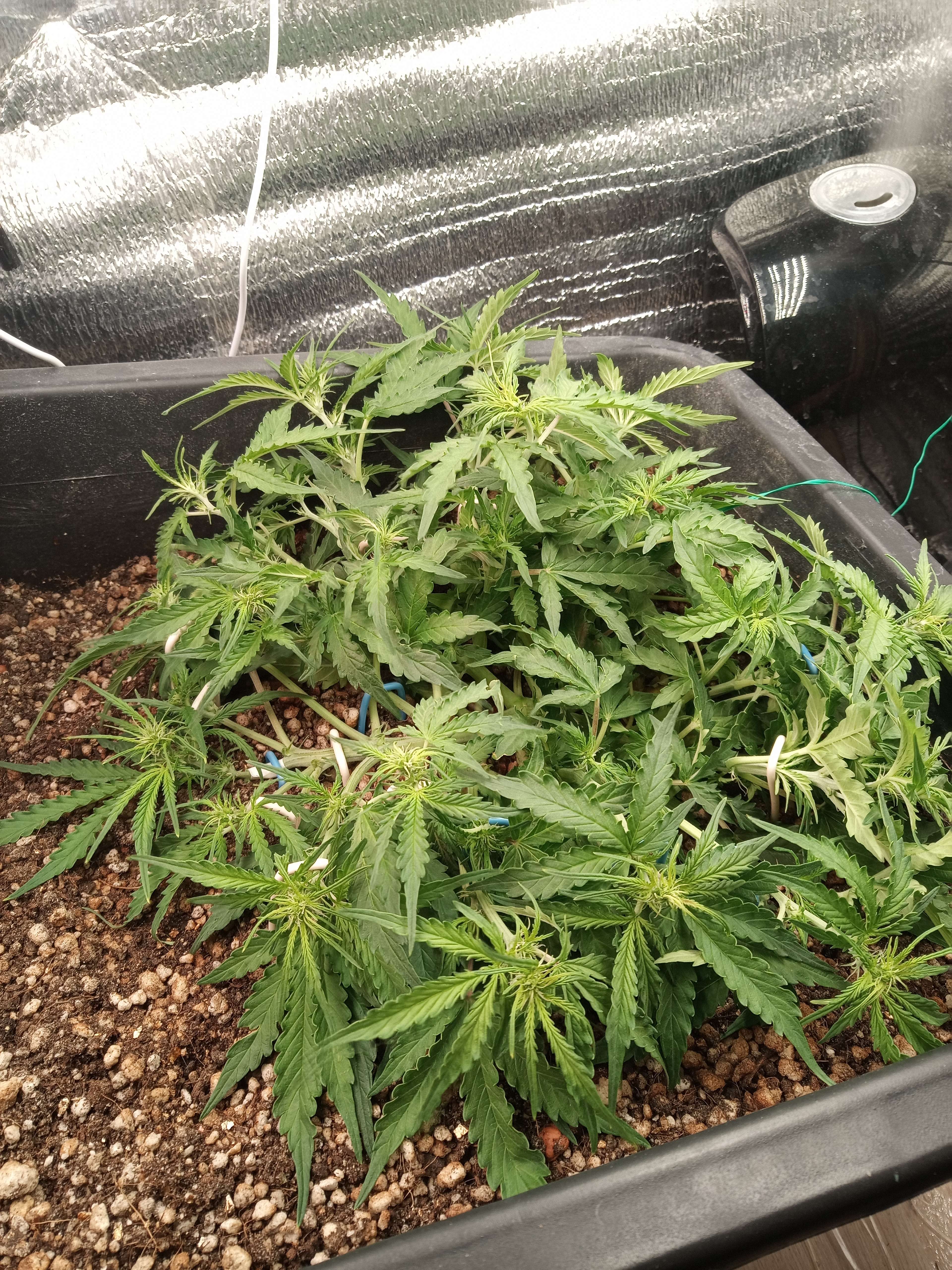 Ну в высоту сильно не должен уже стрельнуть, хотя как знать, мало льъеш раствора имхо, листья устали братва обрати внимание края листьев приподнимаются вверх как бы резко, это может говорить о начале перекорма, хотя не знаю в чем дело так чел сказал на форуме и еще у тебя почему-то стволы листьев вглубине куста белые молочные и очень толстые как будто или это так свет светит ? МОж ты его перекормил чем-то не тем?)