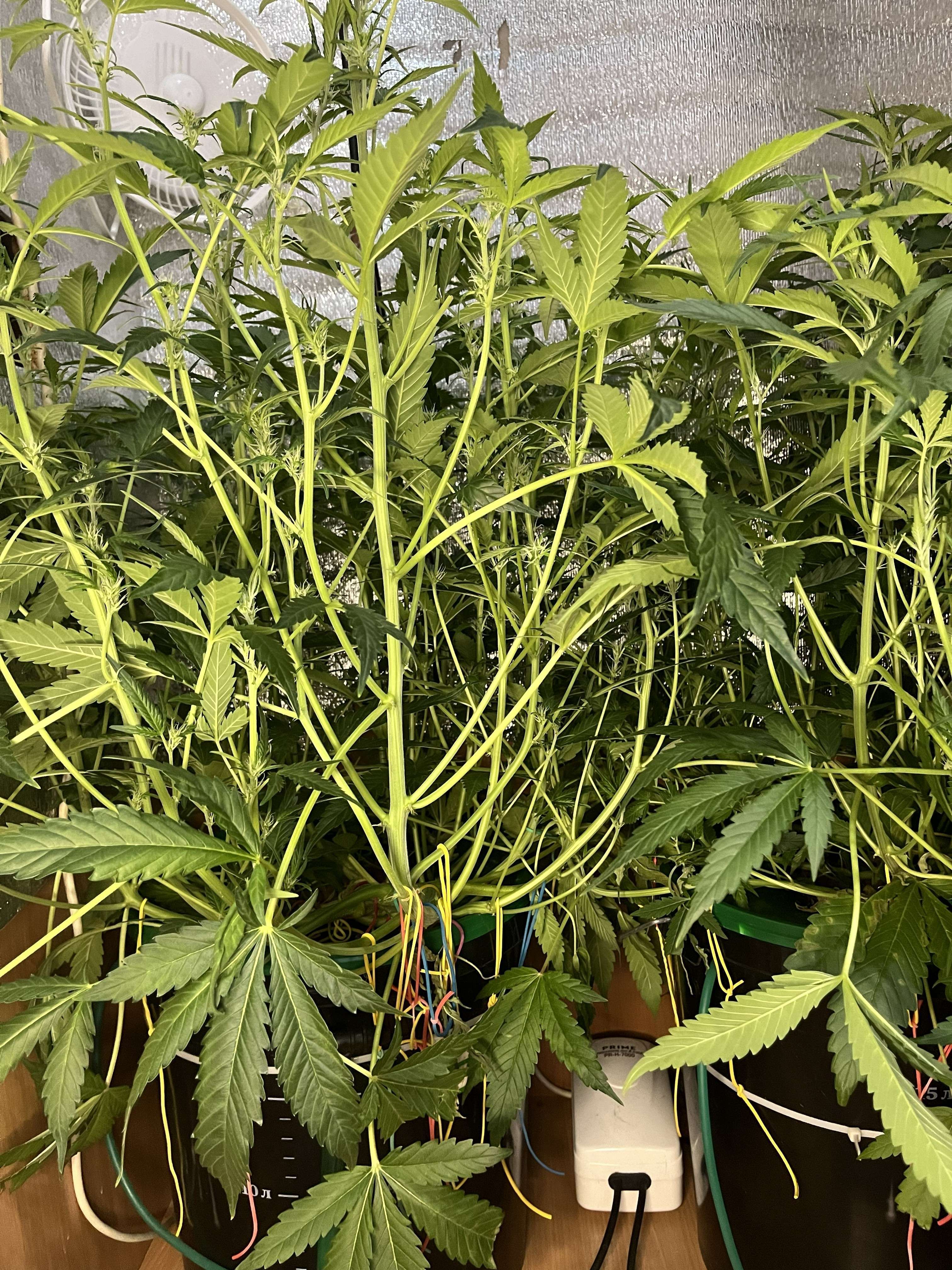 Сегодня нам 44 дня от каски. В целом чувствуем себя бодро. Вчера переключил свет с 400 на 600w, а также вчера почикали лопухи, закрывающие колы (знаю, что листья сахар и все такое, но в тесных условиях приходится жертвовать).