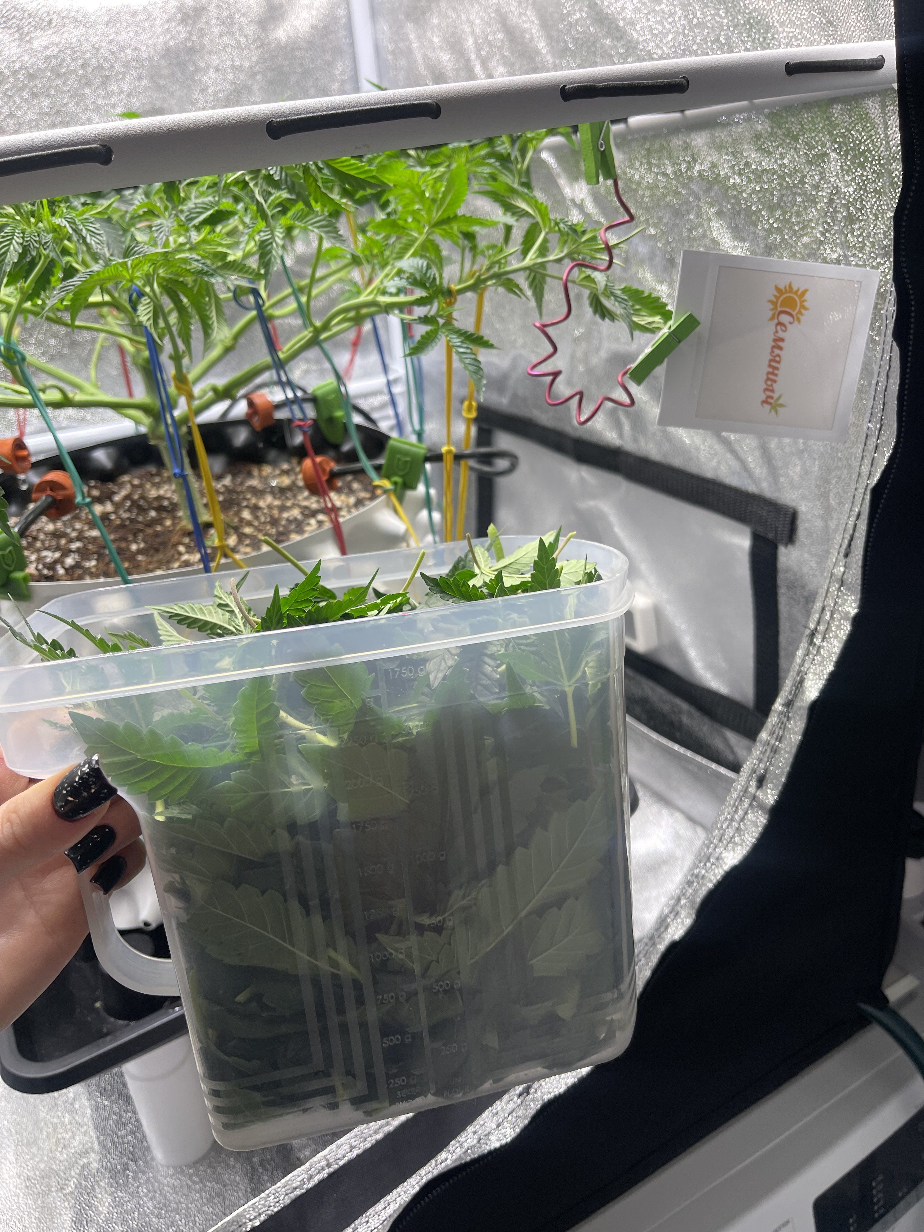 ветки жесткие ,тугие , под сеткой не выдержала рогатка и порвала свою лапу . Сначала думала спасти и смотала изолентой , но эта корявость не давала покоя , отрезала ветку , поставила в воду, а вдруг получиться сделать клона ). К 10 дню после первого применения дала Delty 9 под корень , сначала добавила калмаг до 150, повысила пш компота она прилично конечно же, пришлось также прилично добавить буфера для понижения пш, столько я его еще не лила .