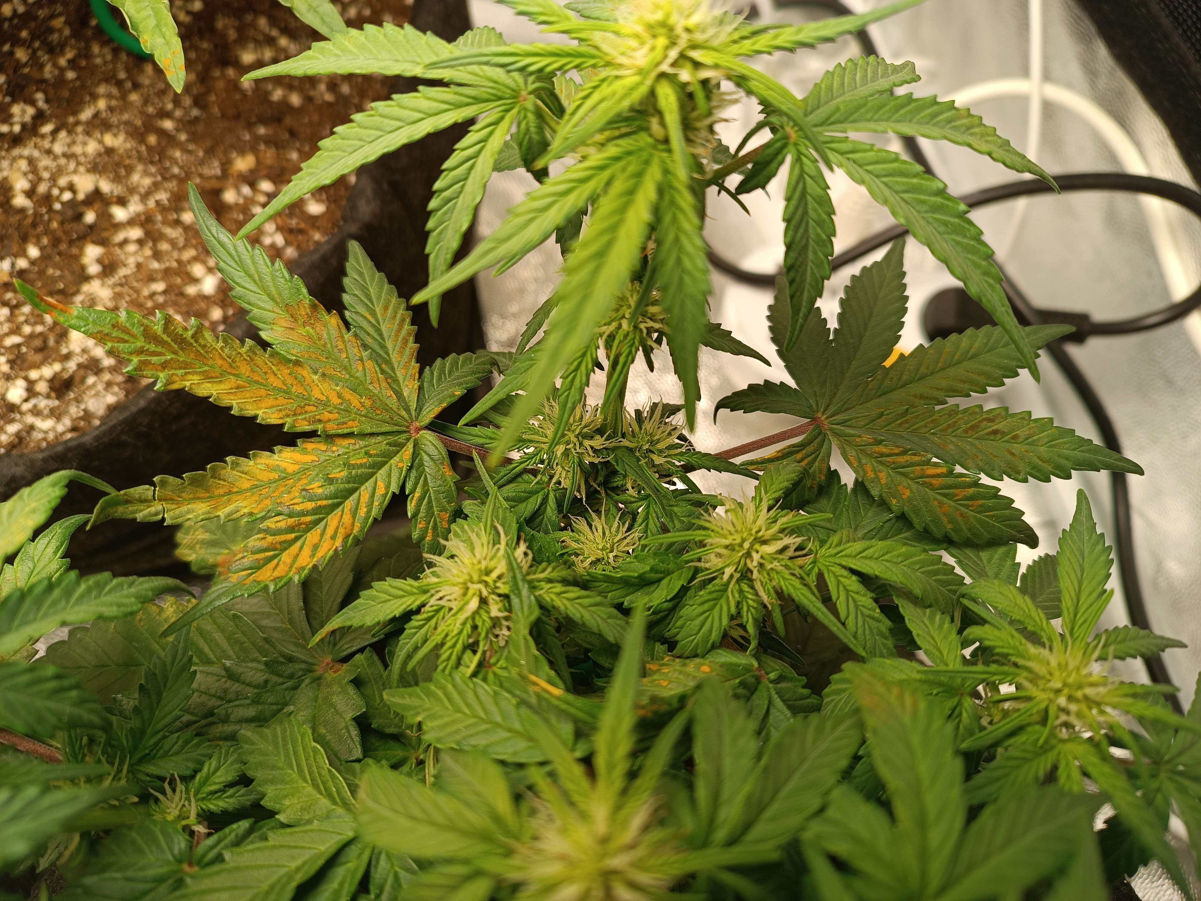 Ещё через сутки: Состояние ухудшалось. Весь день думал. Осознал, что, возможно, это дефицит CalMag'а, спровоцированный моим решением его убрать + активным цветением/ростом.