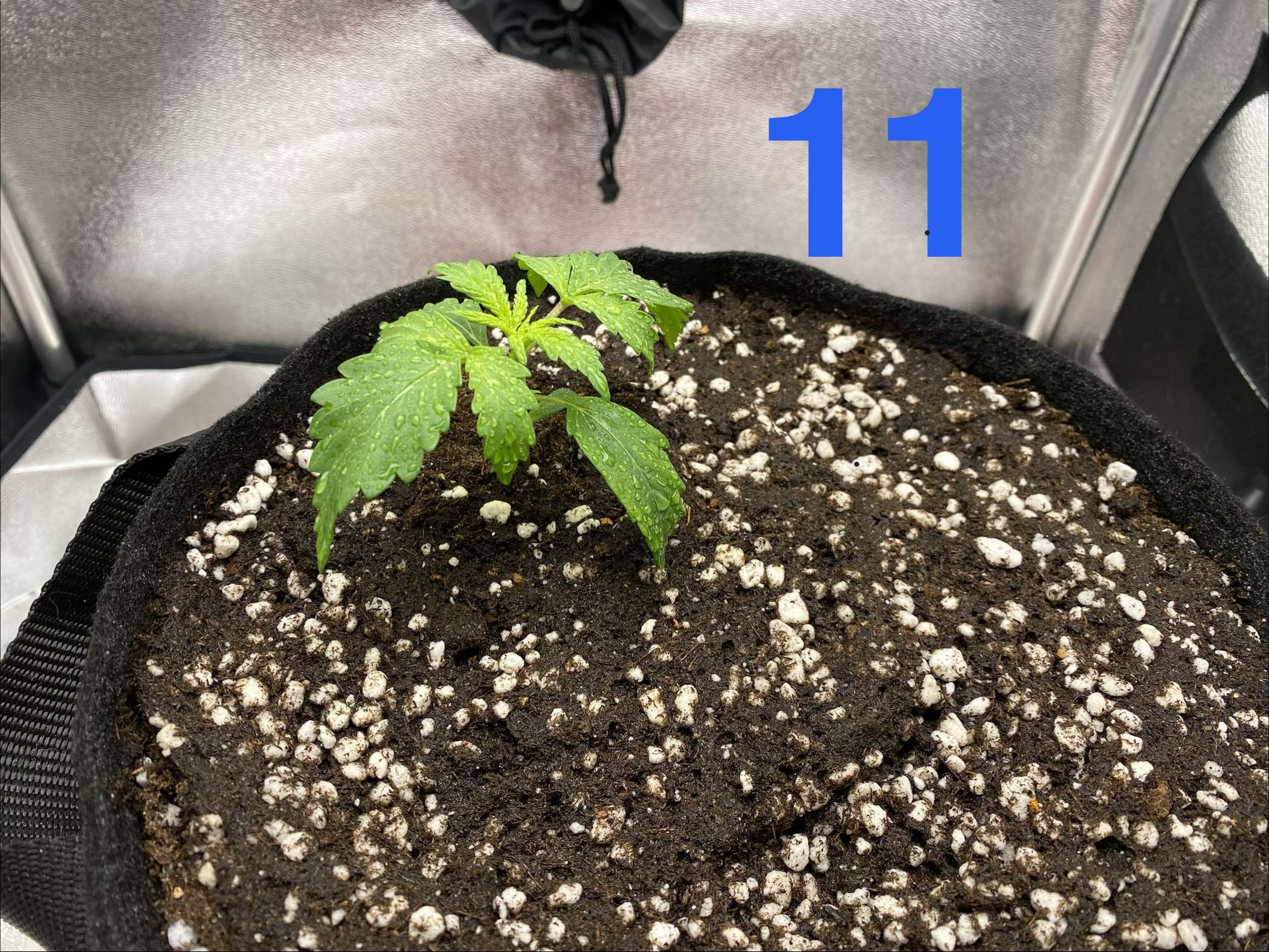 11й день. Ночью из-за какого-то глюка на включился свет, проебали режим, но вроде всё гуд. +1л pH 6.4 ppm 80 первый хороший полив.