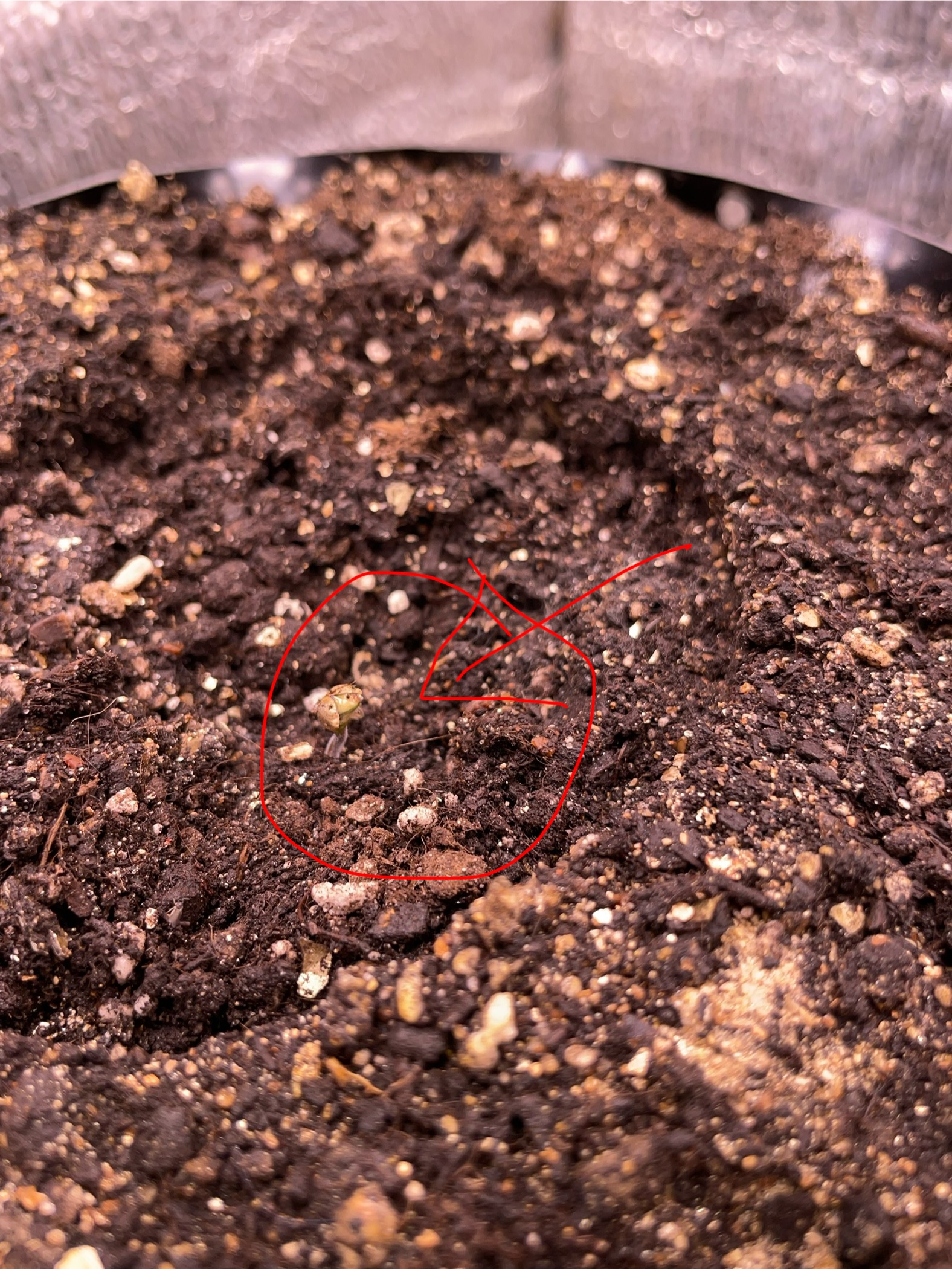 4 день проращивание наконец то вылез пока в каске, но она с боку так что думаю завтра уже скинет и перейдем на вегетацию…