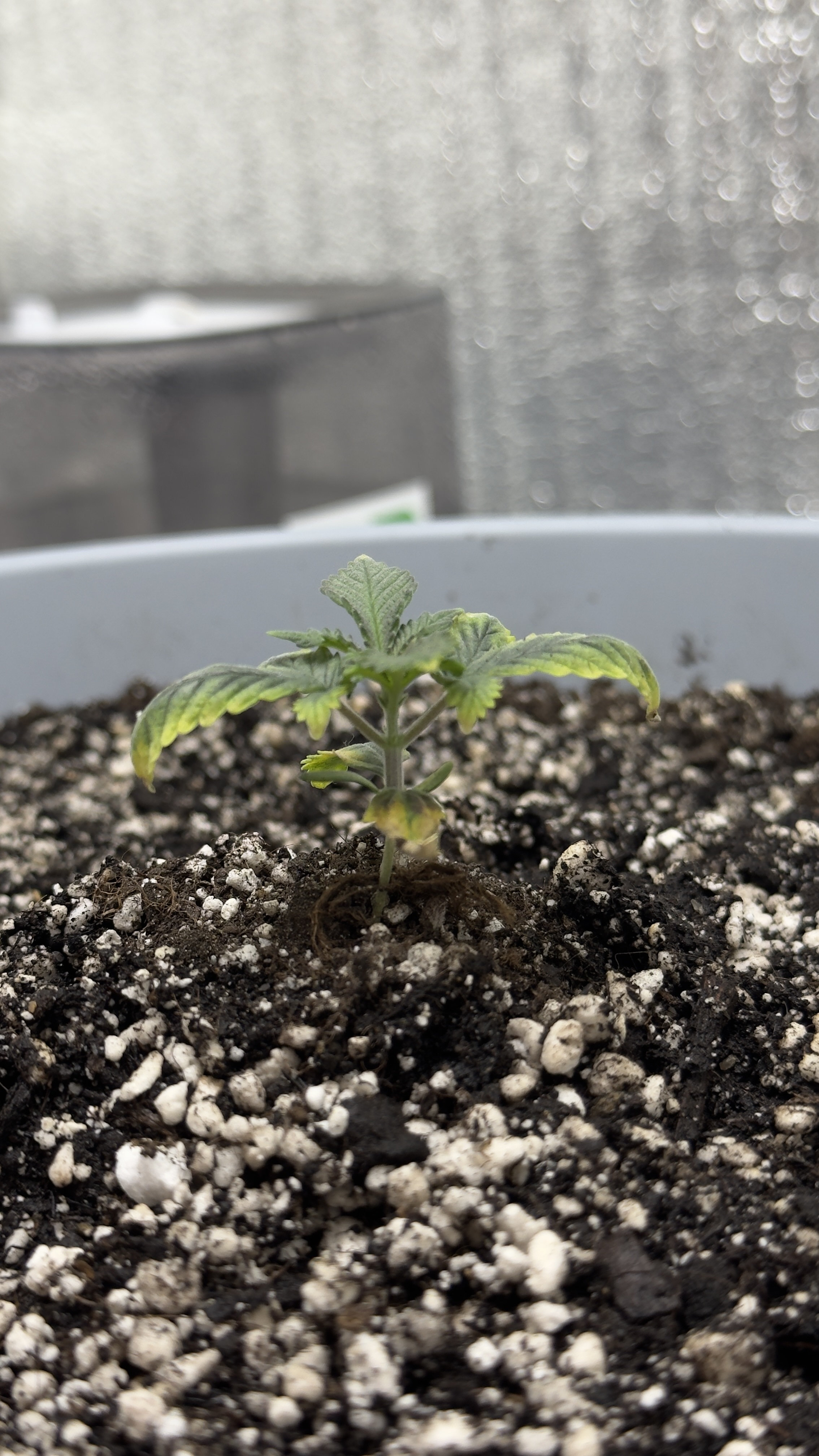 02.12-03.12 Вечером пиздюк переехал в апарты поболее, литром увлажнил грунт, под растиху не лил вообще, лил по стенке, пусть развивает корневую, полноценный полив на 04.12 планирую, 4 дня получается без поливов выйдет, ppm моей воды из под крана 25, ph~7.2, буду заказывать удобрения, стимулятор роста корневой и сегодня куплю 5л в разливайке, гляну какая вода там. А вообще план такой, либо попрет в развитии, либо крякнет и высажу уже как положено бонусные автики, а то начало 3-й недели и 3 см роста😬