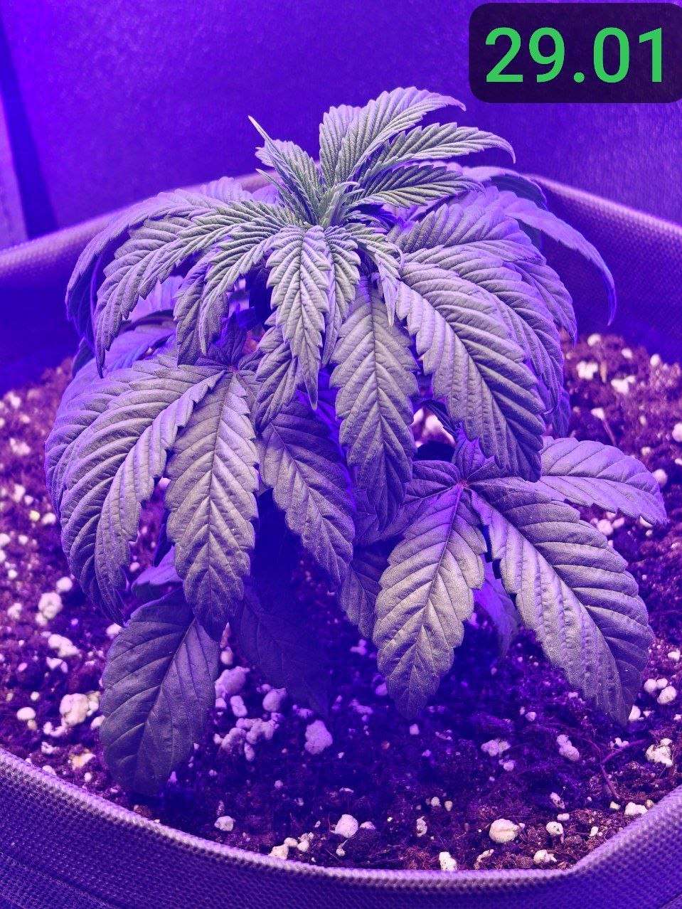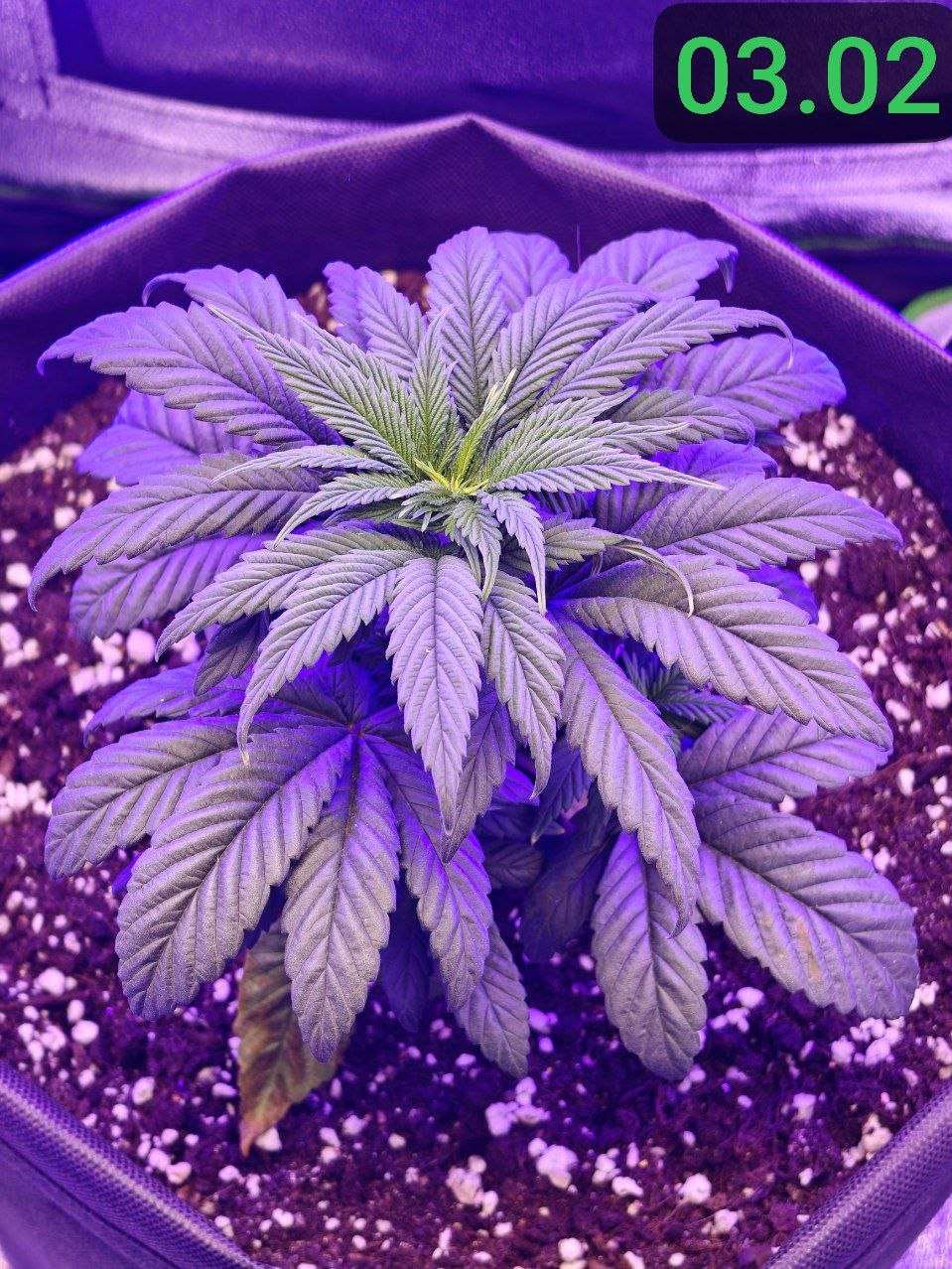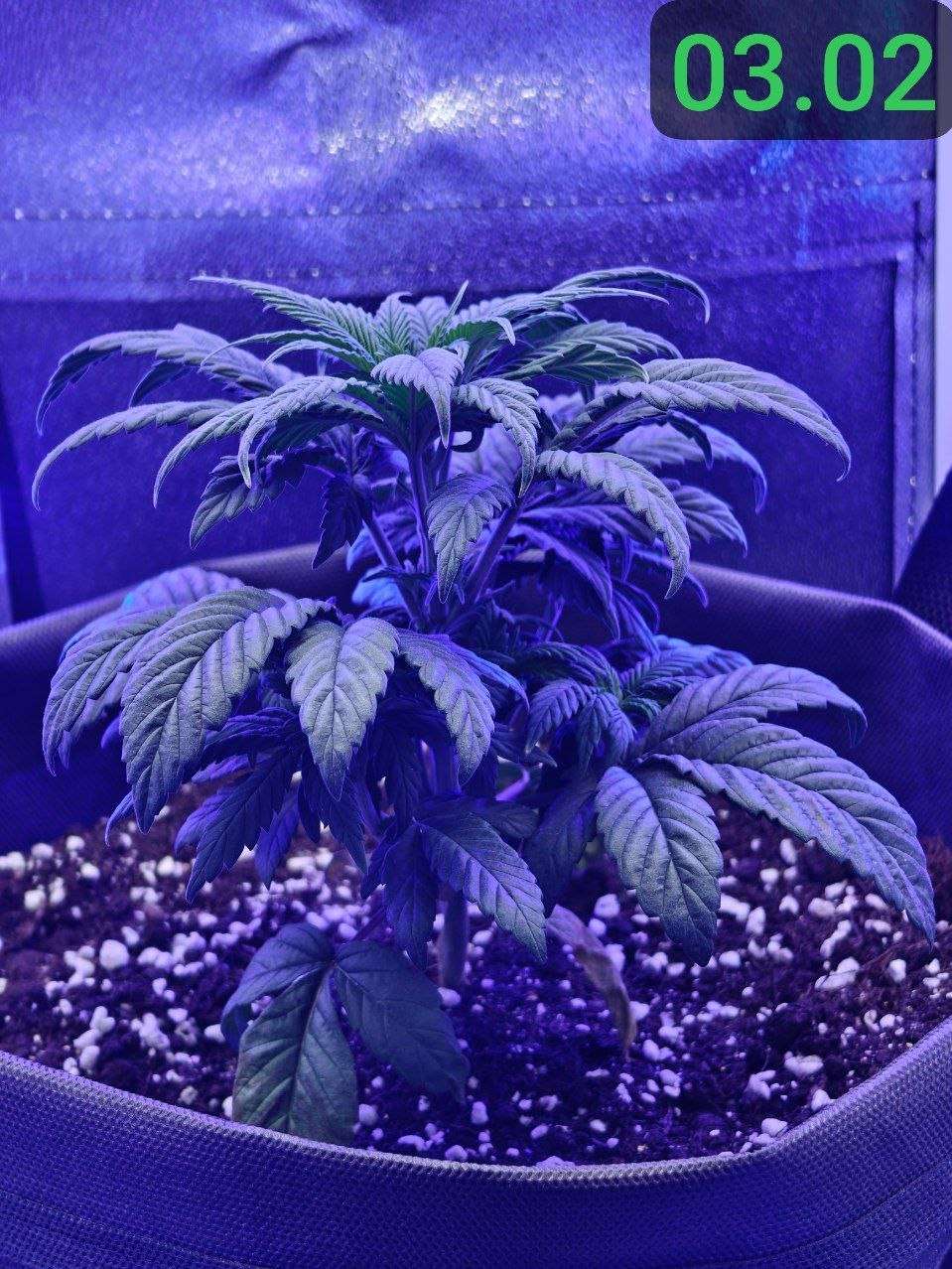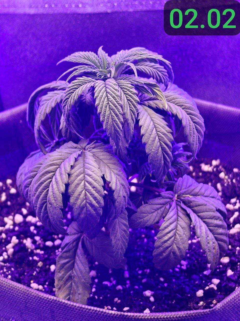02.02 : Горшок просох, а значит пора начинать поливать растение здоровым обьемом воды. Решаю пока не добавлять ничего питательного. Замешал 5л воды с 5мл PureZym - это ферментный препарат, который помогает в оздоровлении грунта и в уходе за корневой зоной, посредством ускорения разложения отмерших корней и органики в общем. Решил начать с полива 800мл. Подготовил грунт, медленно порциями пролил воду по всей площади горшка. Сменил световой режим для растения на 12/12. Не спешу обозначать дальнейшие дни цикла, как "цветение" в своем репорте до тех пор, пока растение не покажет пол и не будет показывать признаков цветения. Принято считать "предцвет" частью цветения, хотя в этот период растение продолжает вегетацию, с каждым днем все менее активно, перестраивается под цветение. Так как перевод был осуществлен на 4 неделе вегетации, с учетом стрессов от перелива и большой азотистости растения, я думаю оно будет продолжать так же как и прежде активно вегетировать ближайшие время, лишь постепенно сбавляя темпы и перестраиваясь на цвет в течение двух недель. Теперь растиха просыпается в 14:00, засыпает в 2:00. Соответственно теперь все фото будут соответствовать указанным датам, в промежутке времени 12 часов бодрствования)