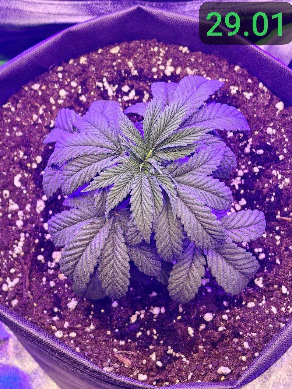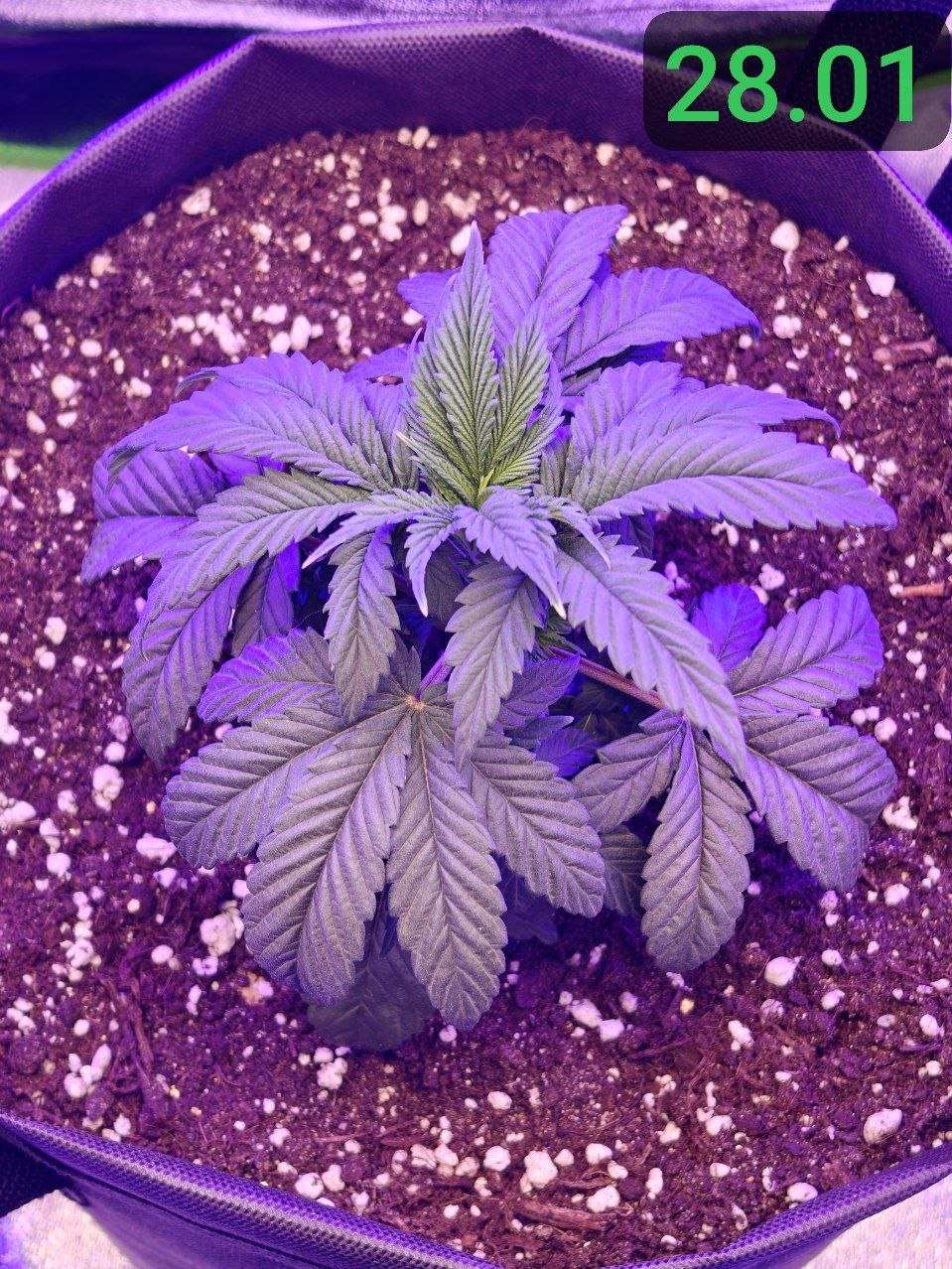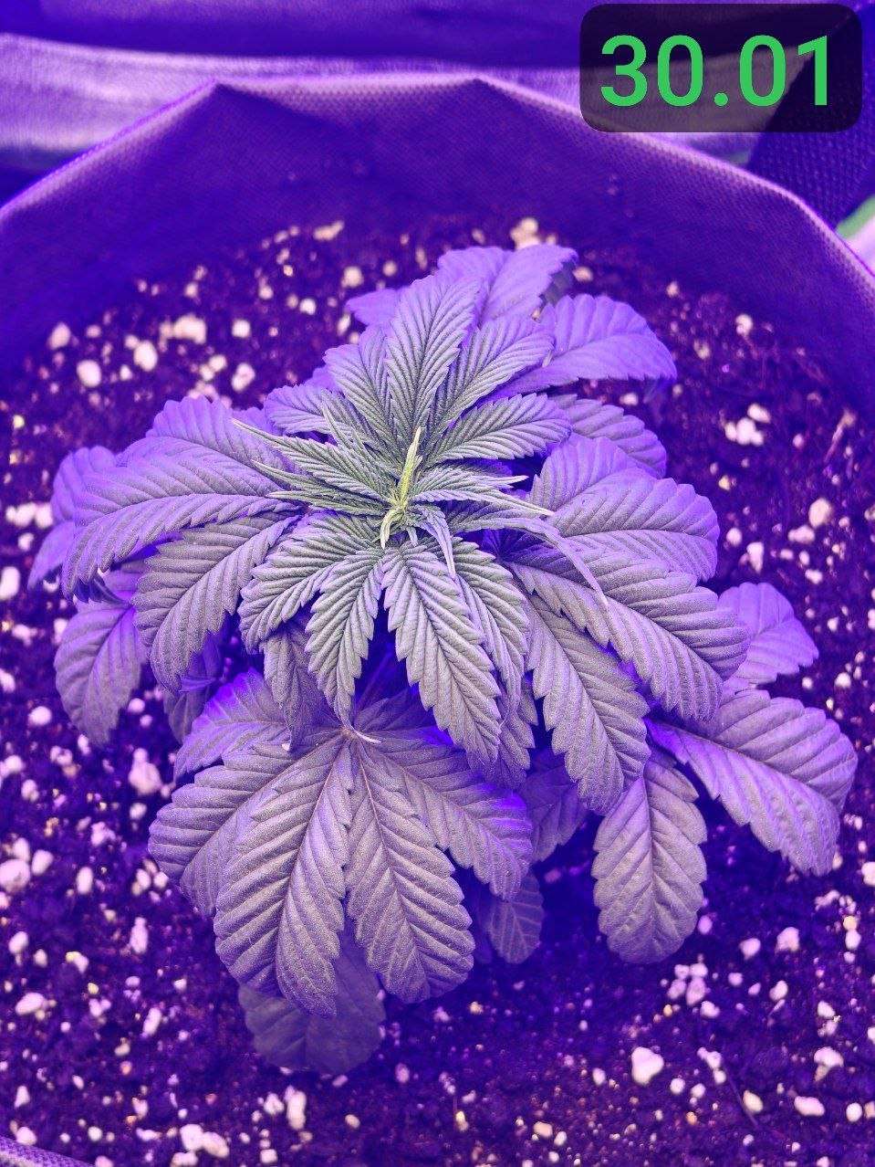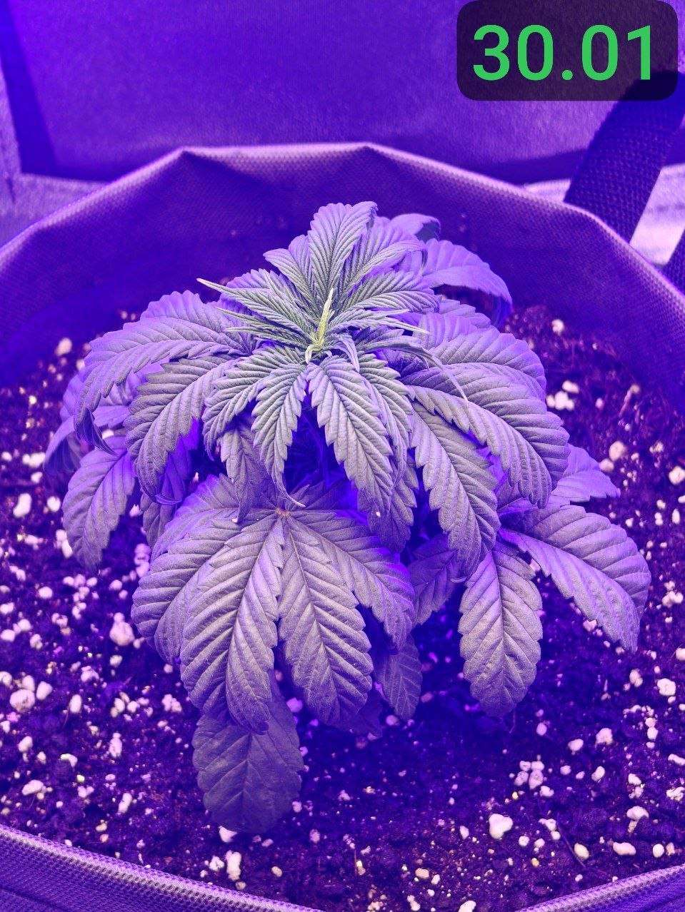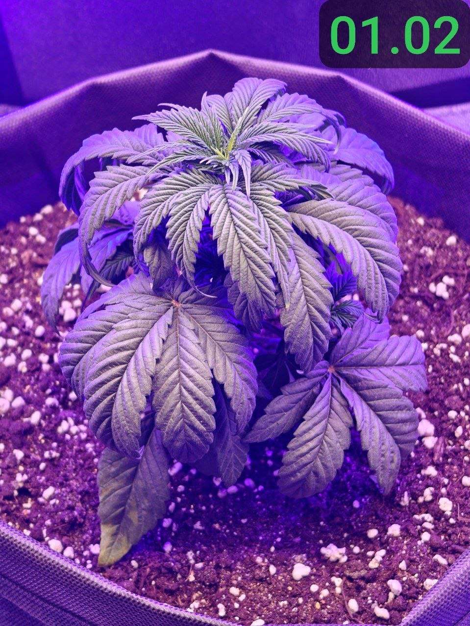 02.02 : Горшок просох, а значит пора начинать поливать растение здоровым обьемом воды. Решаю пока не добавлять ничего питательного. Замешал 5л воды с 5мл PureZym - это ферментный препарат, который помогает в оздоровлении грунта и в уходе за корневой зоной, посредством ускорения разложения отмерших корней и органики в общем. Решил начать с полива 800мл. Подготовил грунт, медленно порциями пролил воду по всей площади горшка. Сменил световой режим для растения на 12/12. Не спешу обозначать дальнейшие дни цикла, как "цветение" в своем репорте до тех пор, пока растение не покажет пол и не будет показывать признаков цветения. Принято считать "предцвет" частью цветения, хотя в этот период растение продолжает вегетацию, с каждым днем все менее активно, перестраивается под цветение. Так как перевод был осуществлен на 4 неделе вегетации, с учетом стрессов от перелива и большой азотистости растения, я думаю оно будет продолжать так же как и прежде активно вегетировать ближайшие время, лишь постепенно сбавляя темпы и перестраиваясь на цвет в течение двух недель. Теперь растиха просыпается в 14:00, засыпает в 2:00. Соответственно теперь все фото будут соответствовать указанным датам, в промежутке времени 12 часов бодрствования)