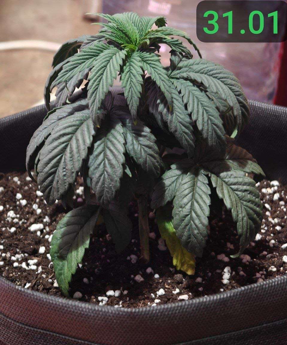 30.01 : Повторил действия за 28.01, прибавив 100мл к обьему полива. 6 этаж довольно крепкий. Готовимся встречать 7. Немного жарко на макушке, чуть поднял лампу. Заметно, первой паре листьев ху#во, желтеет. Это означает, что у ствола просыхаем (y). Уверен, сейчас листва подпрыгнет, теперь и низ. В общем, оправляемся) В комментариях прикрепляю фото, для понимания, что такое фосфорный дефицит у растения. Происходит это по причине закисления почвы вследствие перелива.