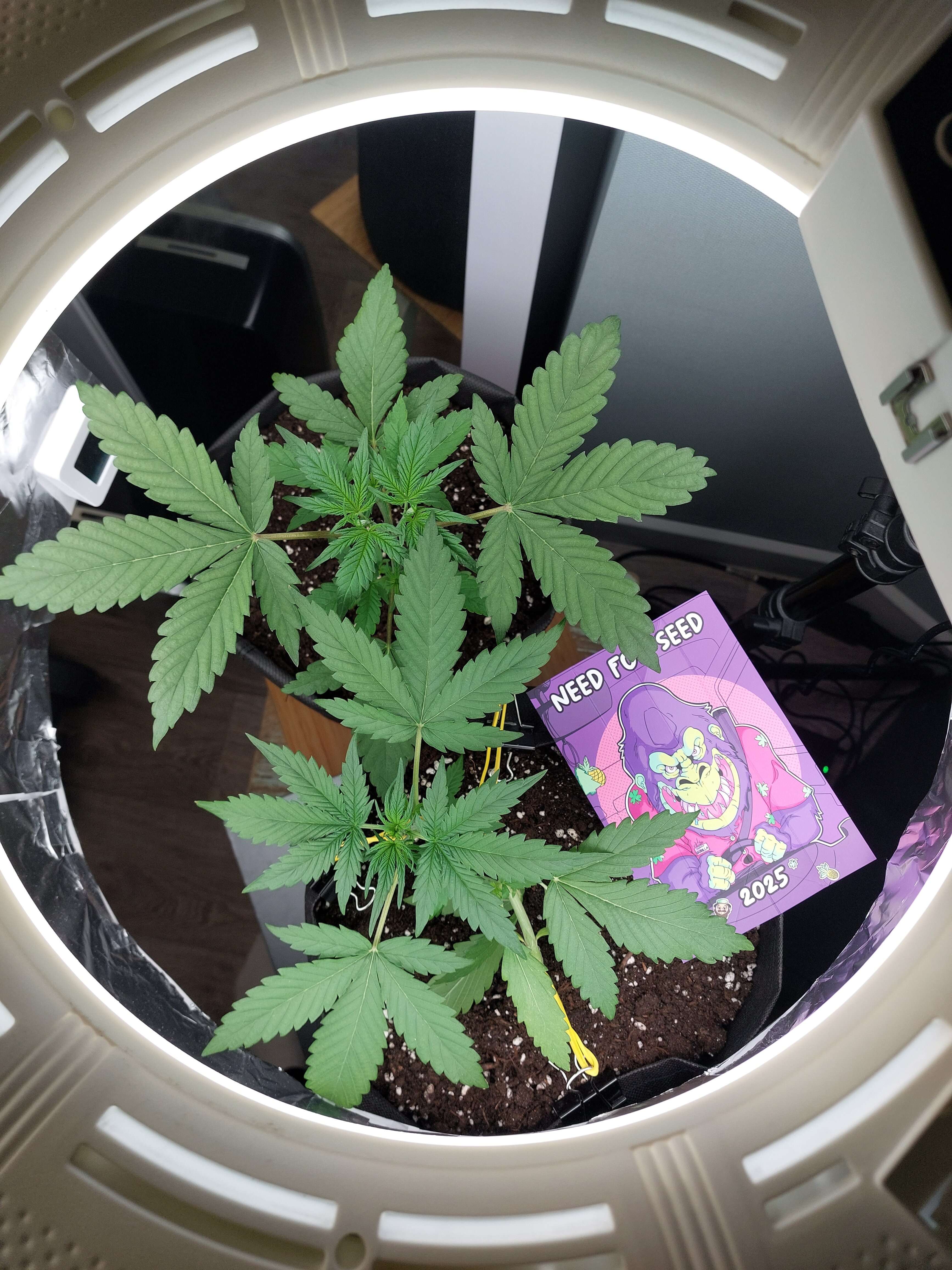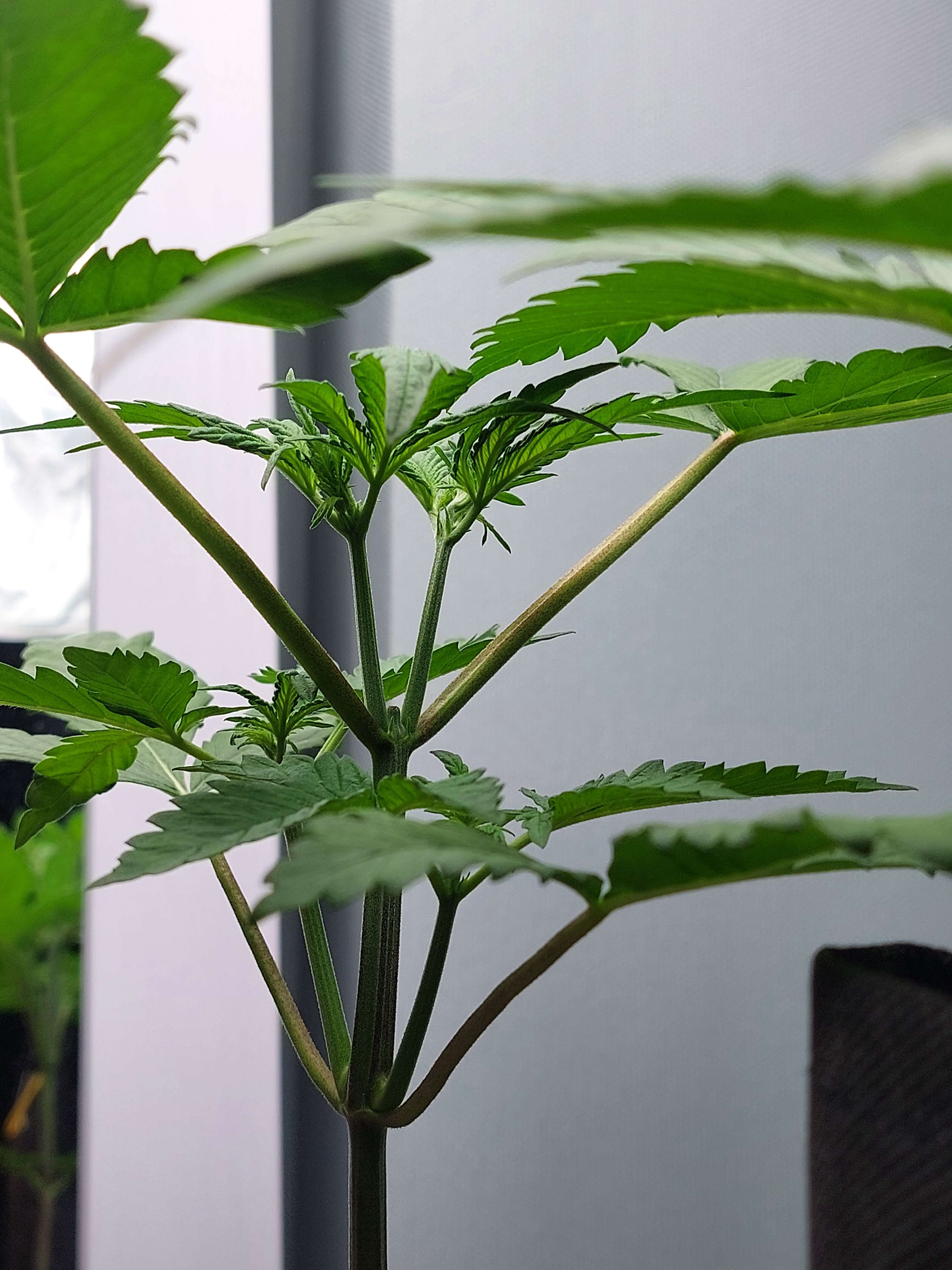На этой неделе перевёл растих с классики на лаундж. Танцуют листочками под вентилятором укрепляют корни и свои тонкие стволы. Прям деревянеют в основании. По причине экстремально высокого роста, старшую топнул на 16 день(!), оставив 3 этажа. Она даже не приуныла. Уже видим 2 новых стебля. Младшую на 16 день погнул и довольно смело (думал, при таком изгибе сломается ствол), а она только листочки вверх и опять танцевать на ветру - вот это генетика