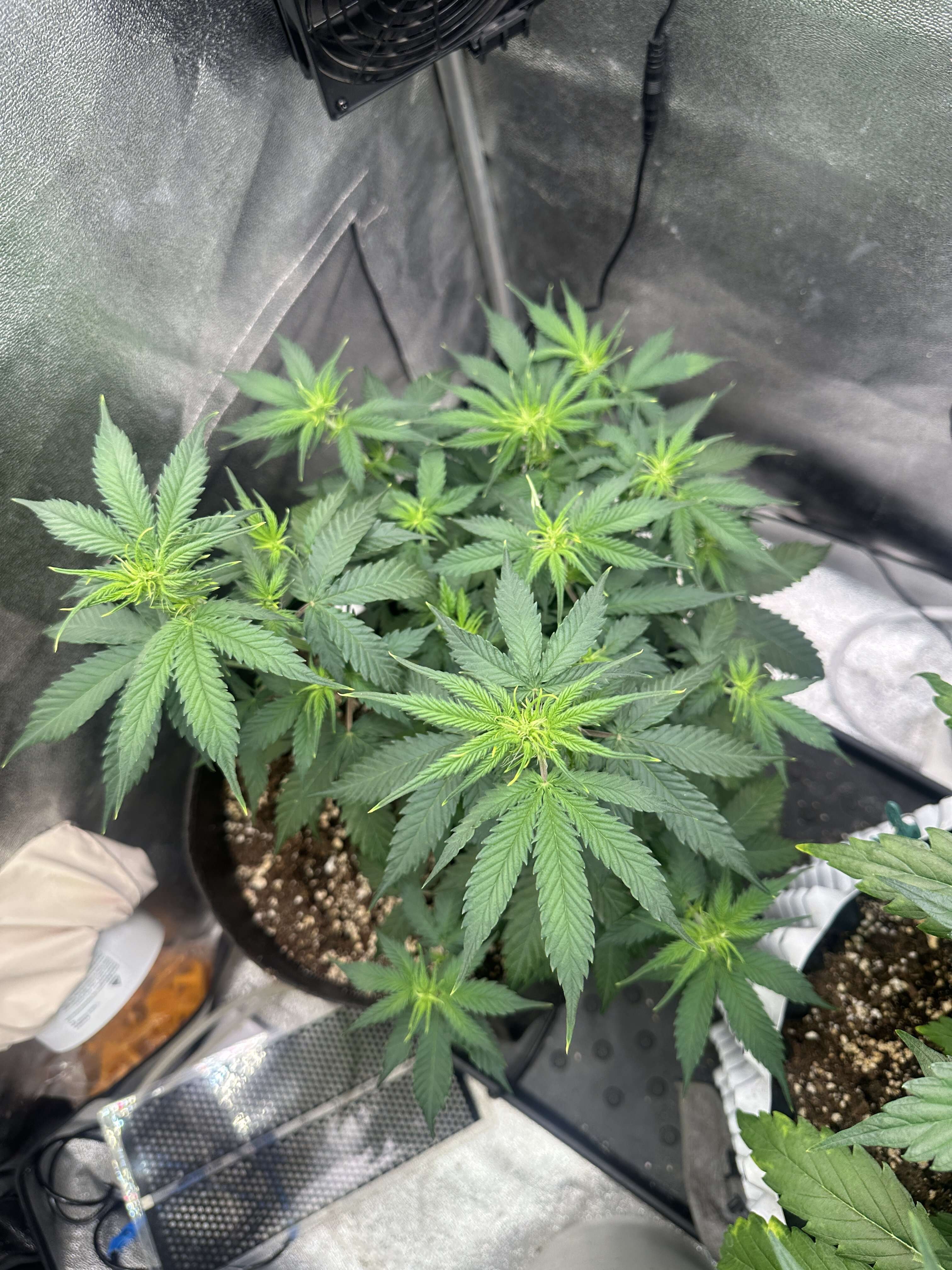 Всё с опытом приходит. Мне вот лампу никак не изменить как у тебя над тремя кустами, а один пришлось притенять пораньше остальных. Они на подставках из пеноплекса 2см. И вот регулировал этими пластинами