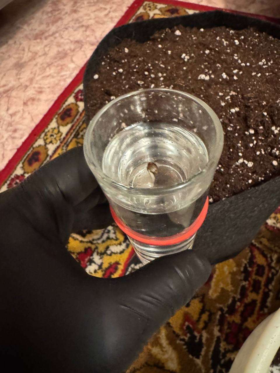 Вода + 12 капель перекиси творят чудеса, уже через сутки видим хороший корень - высаживаем где то в 1см глубиной, баночку сверху и погнали!!